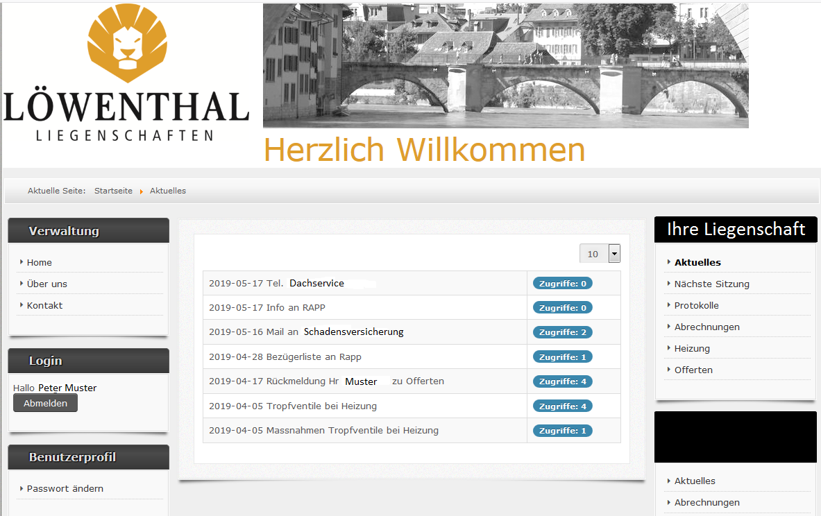Mit unserer Informationsplatform haben Sie jederzeit den Überblick über die Aktivitäten ihrer Liegenschaft.